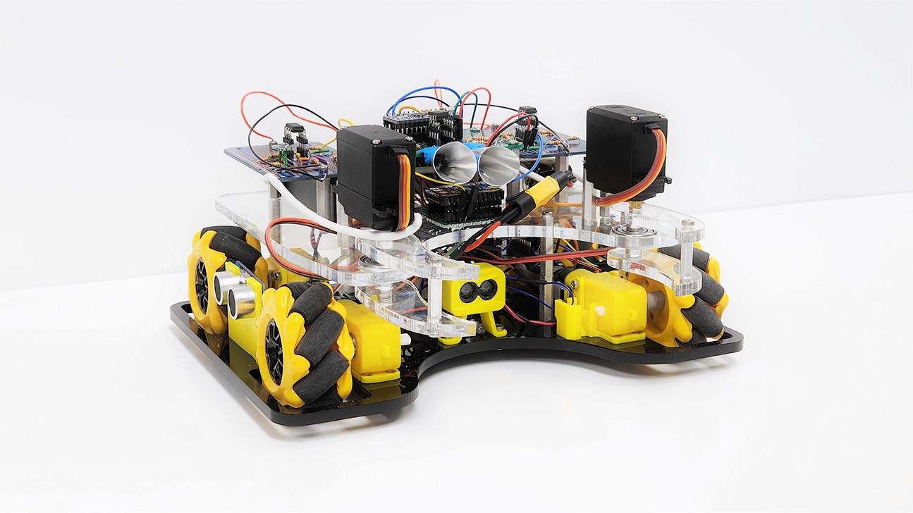Wall following was achieved using a series of distance sensors (3 ultrasonic, 1 LiDAR ToF). I wrote the obstacle avoidance code to make use of the mecanum wheels for wallfollowing.