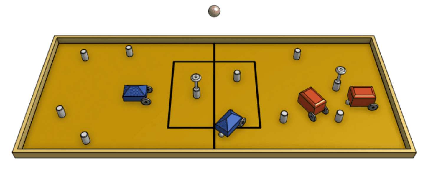 Robots are to use a mixture of beacon detection, localization via HTC Vive lighthouse and obstacle avoidance to navigate autonomously.
